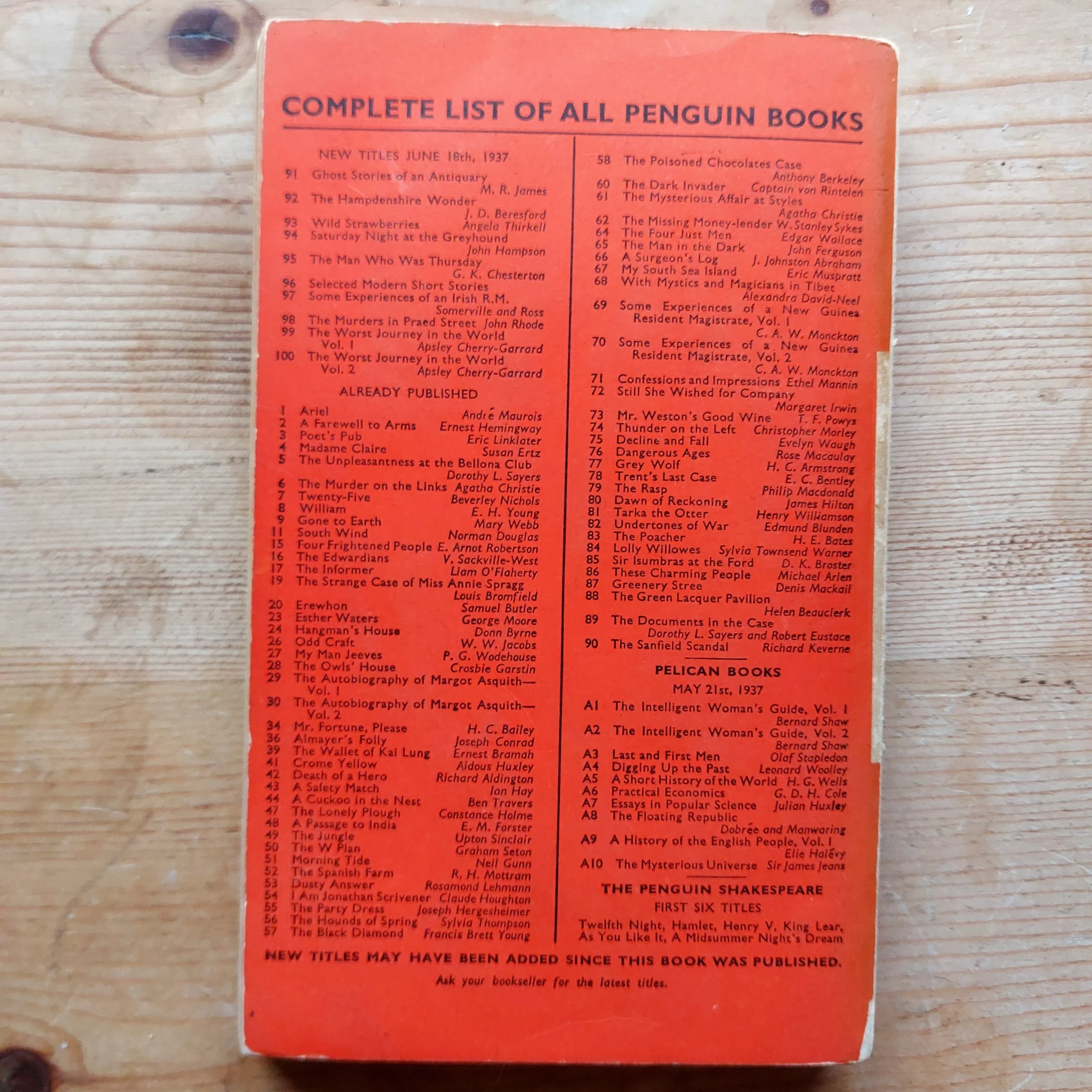 Penguin Main Series 91. 1st Edition, published 1937.